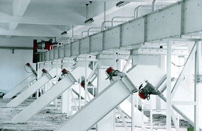 性能特點及適用范圍 系列刮板輸送機普遍用于糧食儲運、糧油及飼料加工、化工、酒廠等。該機具有體積小、密封嚴、噪音小、易安裝操作及可多點進出料等特點,并配有耐磨襯板、防堵斷鏈裝置、憋堵門,提高了設備運行